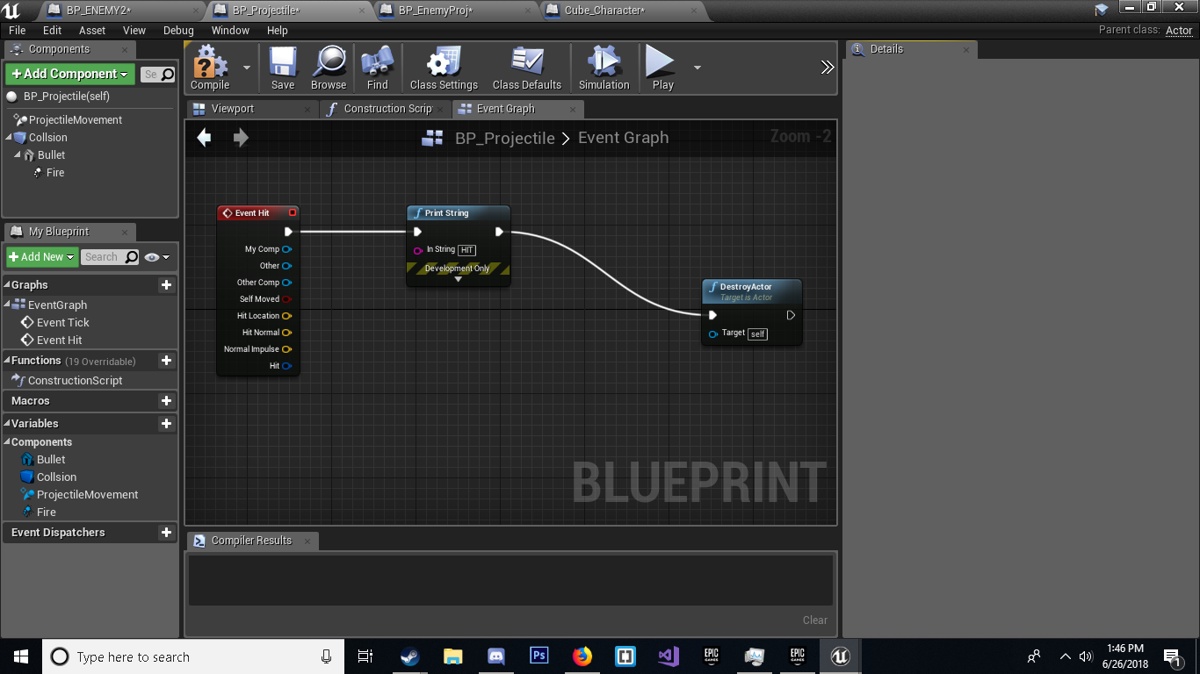 I have this problem where my bullet goes through walls and the floor, I would like it to destroy on hit. Any help?