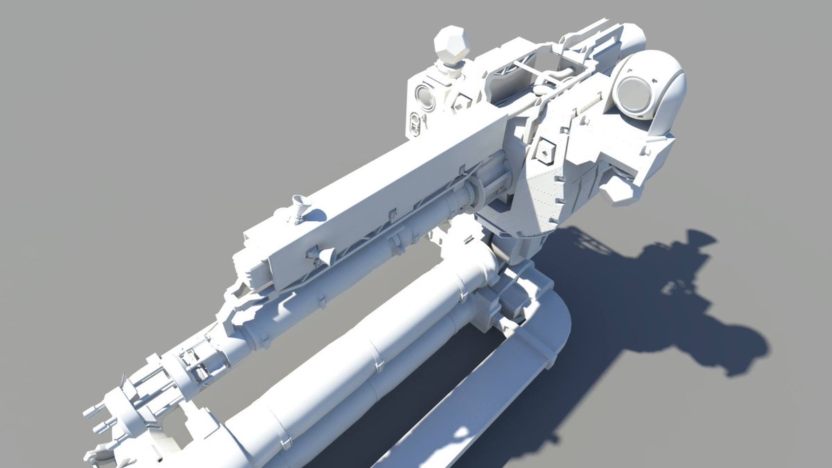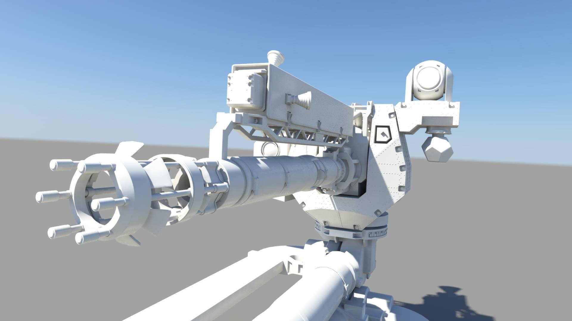 The “Orbital Close-In Weapon System”. Started modeling this before I started building the spacestation. I was figuring out my prop/asset pipeline. It’s a gun on a space arm to counter incoming missiles.