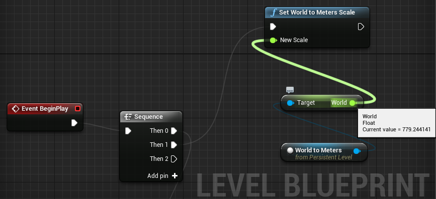 Finaly on the Level blueprint, I configured the “World” float as a new scale for the "Set World to Meter Scale"
