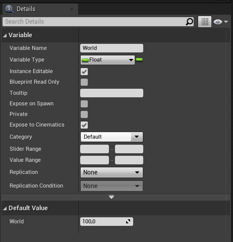 I’ve create an Actor BP called “World to Meters” with a Variable float called “World”.