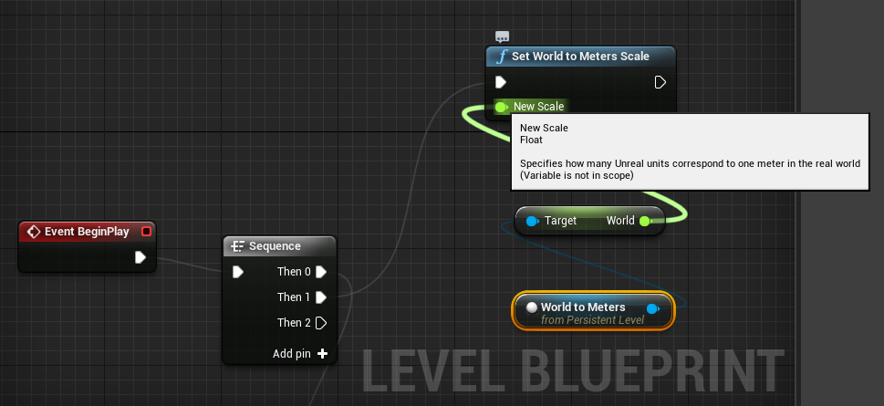 - But it don’t match with the “Set World to Meters Scale”. (Variable is not in scope).