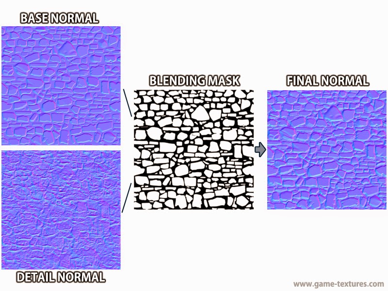 Using masks I mix the basic maps with variations, so that the final result looks as good as possible.