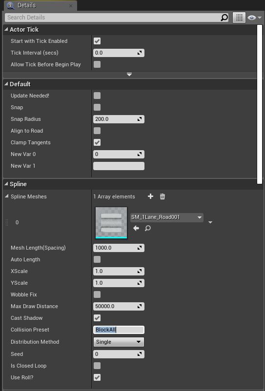 If you don’t make the change inside the BP_SnappyRoad then you’ll have to do it individually for every single one you place in your level. Not sure why it’s set to OverlapAll by default, but it’s an easy fix.