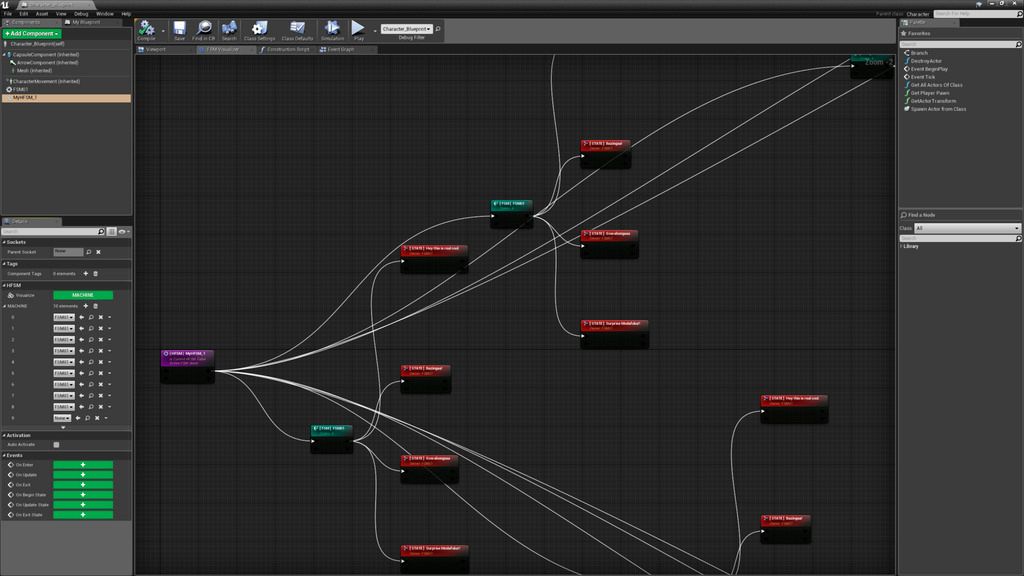 Now I’m using State Machines for everything when programming Blueprint graphs. My variables in the character blueprint are State Machines only now and every time something is not working, is easy to pick which FSM the issue is and work on it without affect other elements of the character blueprint and without fear that I may be breaking something else…