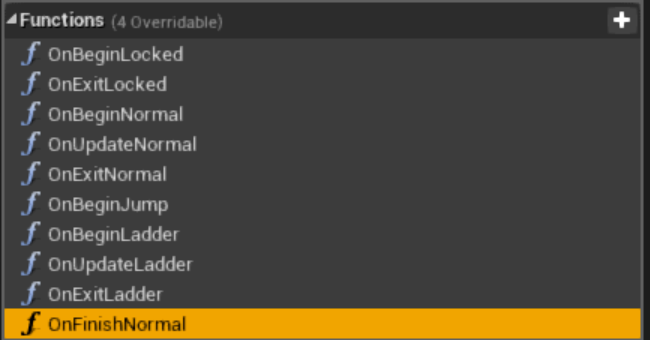 Since I know that default transition is set to be Jump when Normal exits, now I just call “Finish State” instead of manually telling the FSM to explicitly go to a State I chose based on IFs and ELSEs somewhere in the Blueprint Graph:
