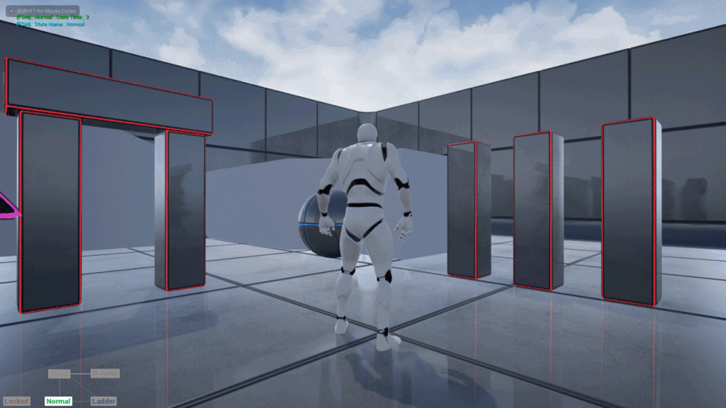 This behaves a lot like Animation Graph’s transitions system, since my Blueprint Graph is telling the FSM Component to go to the Normal State as soon as the character ends his jump and on the other hand Normal State is being finished every 4 seconds with a link to Jump State again…
