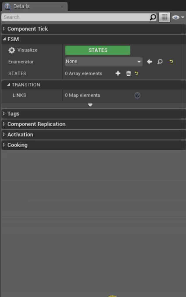 Those ‘links’ are a place where you can dictate which State comes next without having to deal with any Blueprint code, just type in the name of target next State your FSM is supposed to go after you’re done with current State.