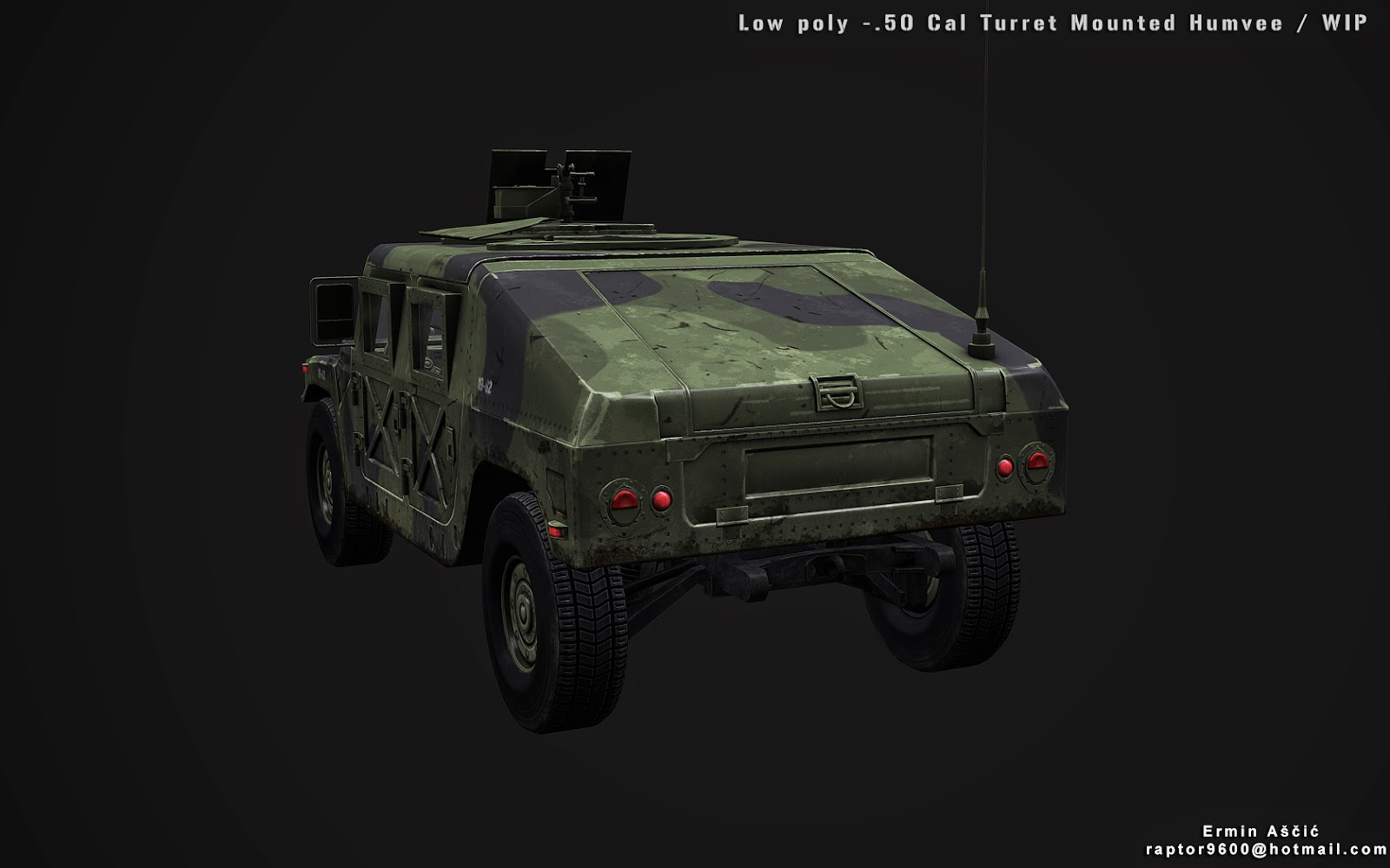Third model for Unreal market place sweet hi poly model of .50 Cal Turret Mounted Humvee, after this one i will ask permission to release content on market place as driveable vehicle pack.