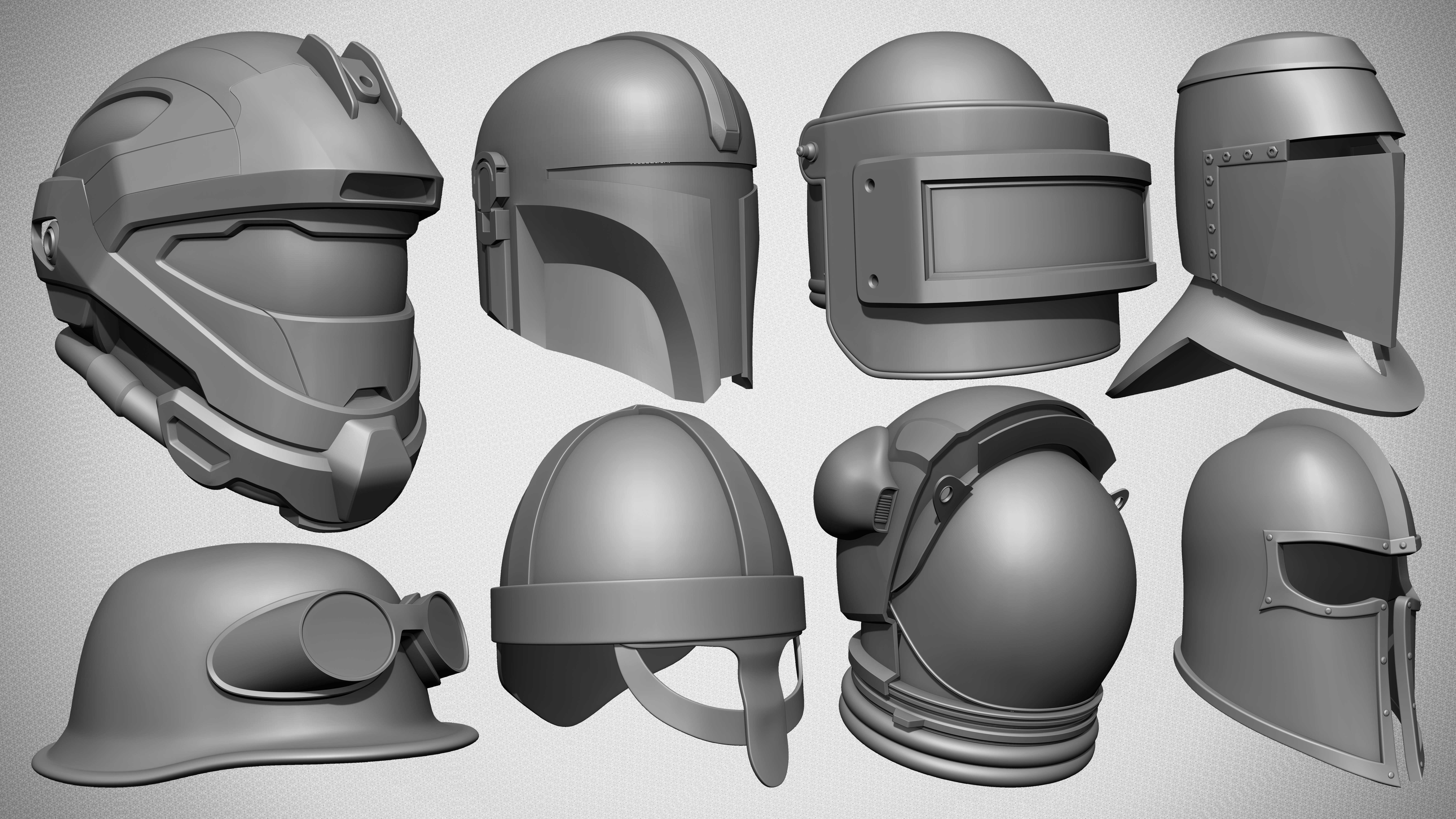 I am presenting a diverse collection of 20 helmets, thoughtfully designed for versatile applications across your 3D projects. This collection includes helmets spanning various historical and conceptual timelines—from medieval and ancient periods to modern and futuristic designs—designed to add depth and authenticity to characters within any scene.